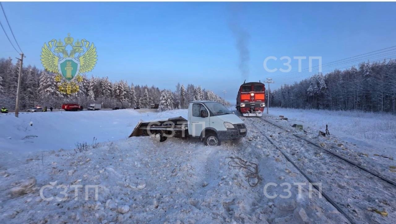 На переезде в Республике Коми сегодня утром едва не произошла крупная железнодорожная катастрофа. Водитель "Газели", проигнорировав предупреждающие сигналы, выехал на пути прямо перед надвигающимся грузовым поездом.