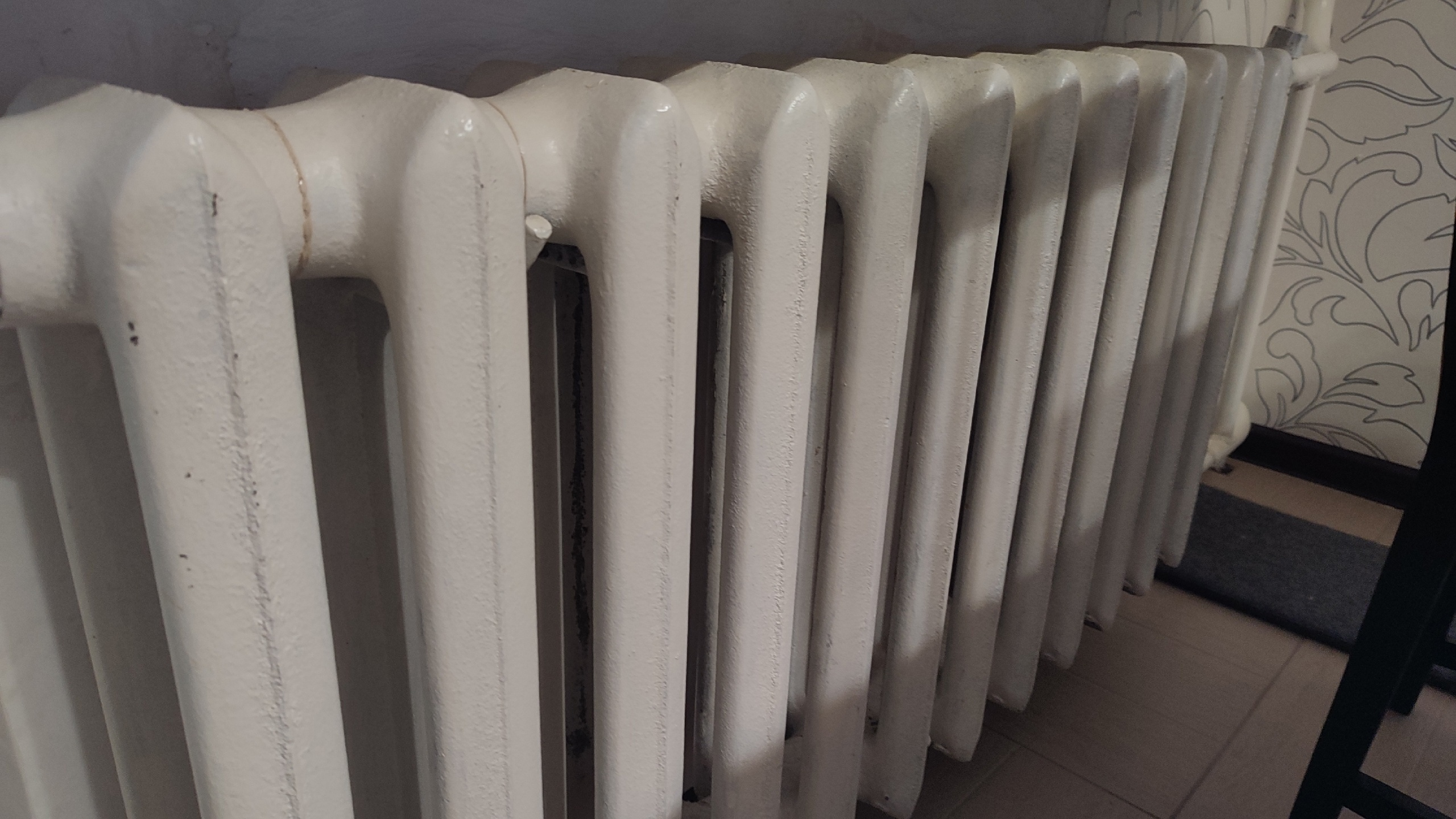 Наряду с ними в квартире установлен один современный алюминиевый радиатор, появившийся там по необходимости после выхода из строя старой стальной плоской батареи, которая дала течь.