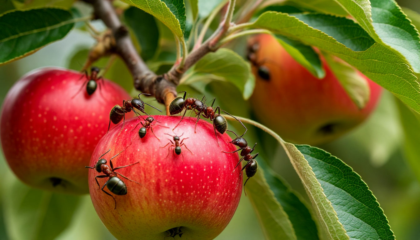 Особенно вредоносным является союз муравьев и тли — настоящее бедствие для яблонь, груш и других фруктовых культур. Этот тандем приводит к значительному снижению урожайности и ухудшению качества плодов. Муравьи выступают в роли заботливых хозяев: они бережно переносят тлю на молодую поросль и листву, создавая идеальные условия для её питания. В свою очередь, тля высасывает жизненные соки из растений, существенно ослабляя их иммунитет и открывая путь различным заболеваниям.