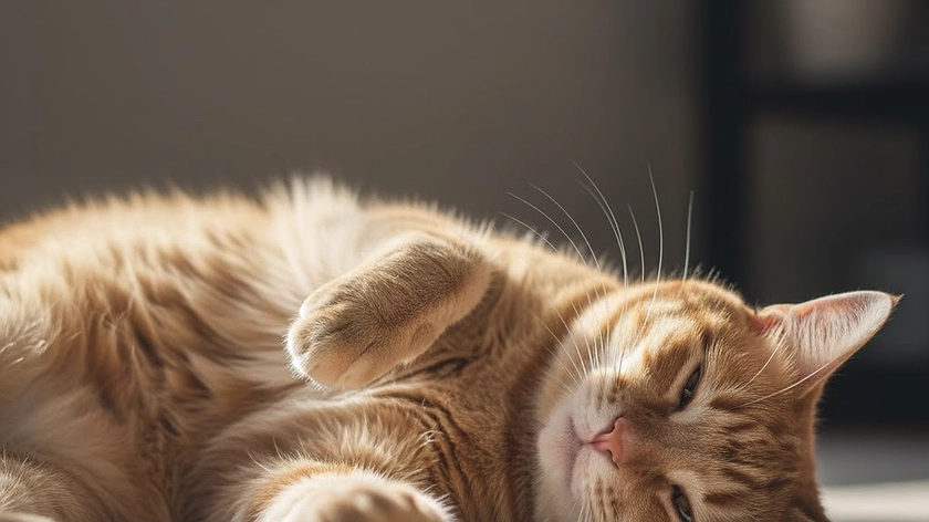 Самый коварный вариант. Я вижу открытый живот и хочу его погладить, но едва дотрагиваюсь — она мягко прикусывает руку или ловко цепляет её лапами. Это не злость — это инстинкт. Живот для неё — запретная зона, и показывая его, она делится доверием, а не просит трогать.