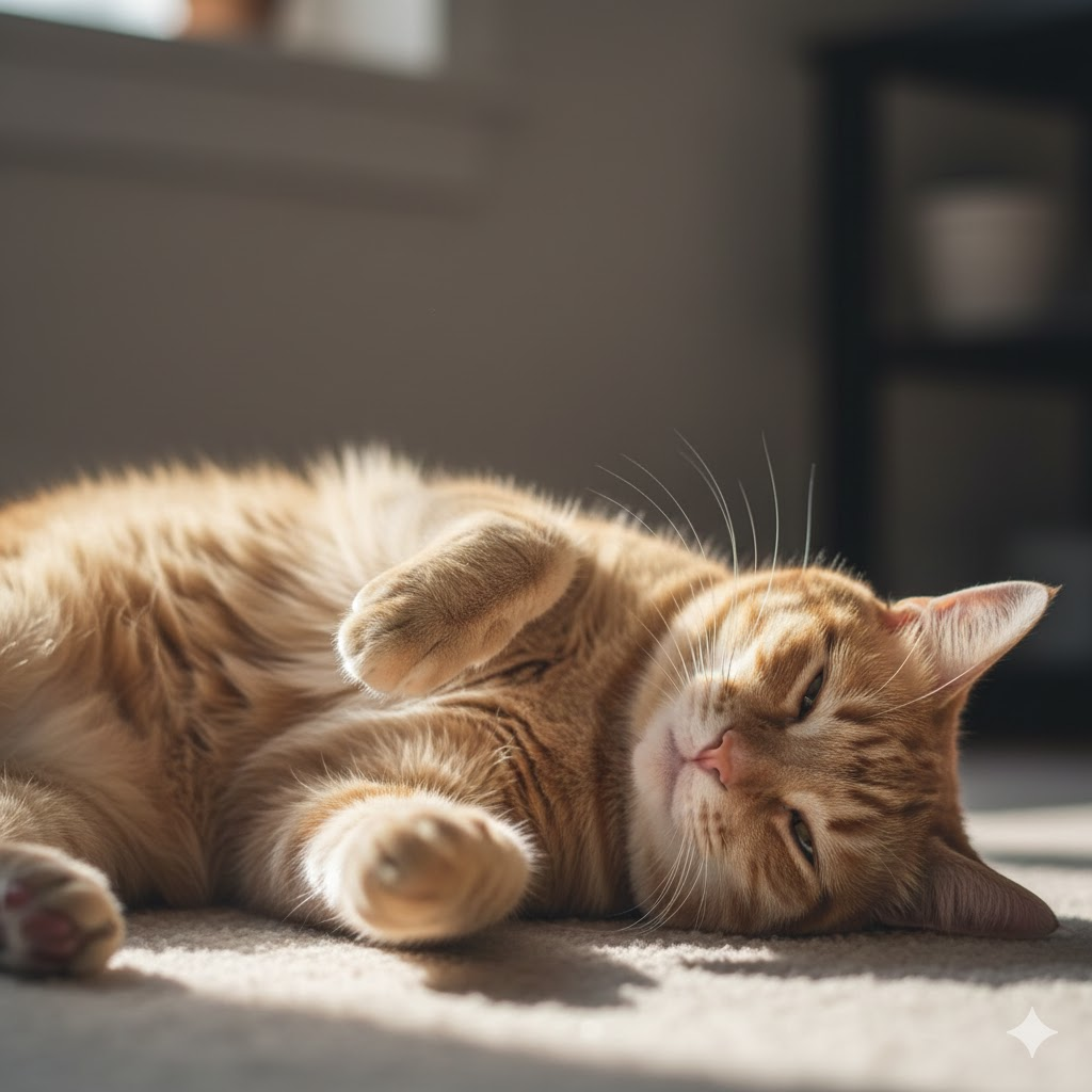 Когда моя кошка разворачивается так, что живот оказывается открытым, я понимаю: это не просто милость момента. В природе такая поза невозможна — слишком опасно. Значит, дома она ощущает абсолютную безопасность.
