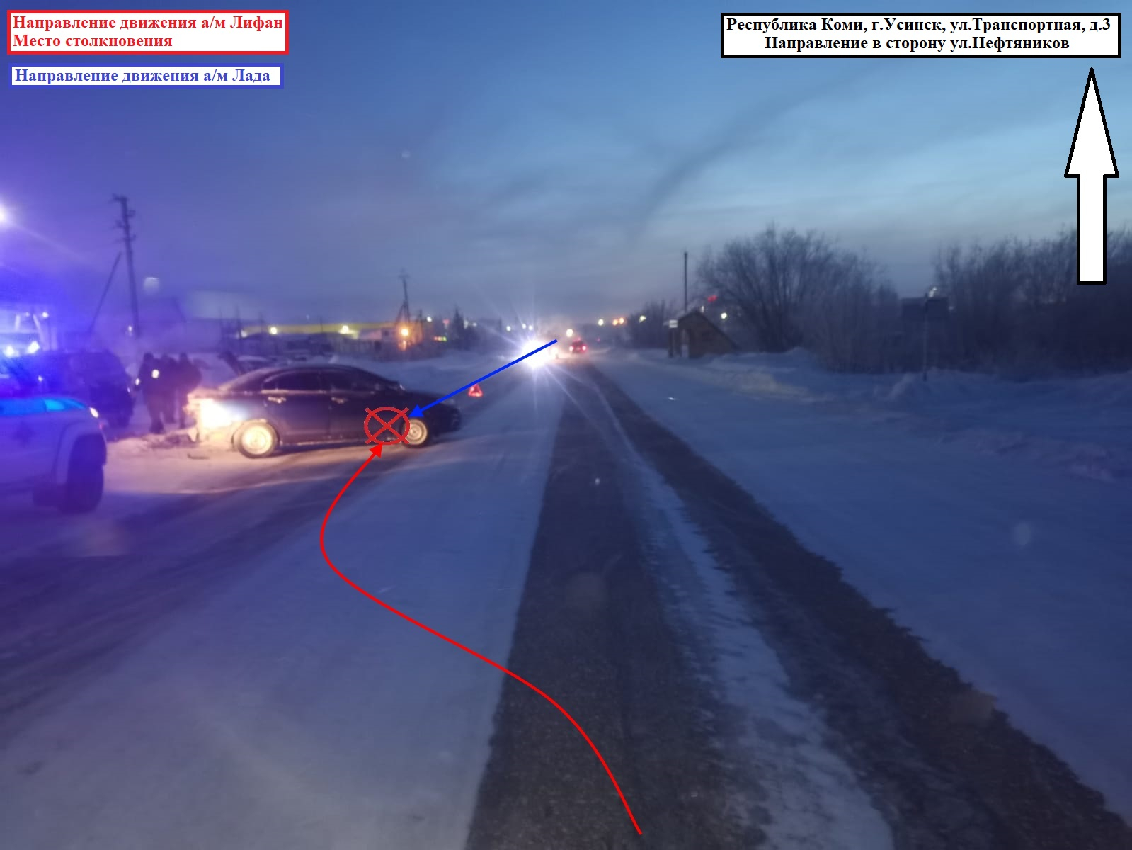 В Усинске 21 ноября в 14:00 произошла авария с участием двух легковых автомобилей Lifan Solano и LADA Granta.