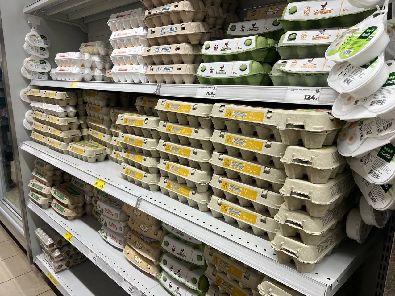 Наибольший рост за отчётную неделю продемонстрировали куриные яйца, цена на которые увеличилась на 4,2%. Также отмечено повышение стоимости поваренной соли и пастеризованного молока — на 1,2%, а печенье стало дороже на 1,1%. В то же время наблюдалось снижение цен на гречневую крупу, подешевевшую на 1,8%, и сметану, расценка на которую сократилась на 1,2%.
